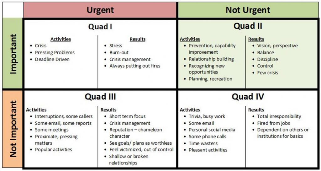 Steven R Covey beautifully defined time management into this simple graphic in his famous book, “The Seven Habits of Highly Effective People”